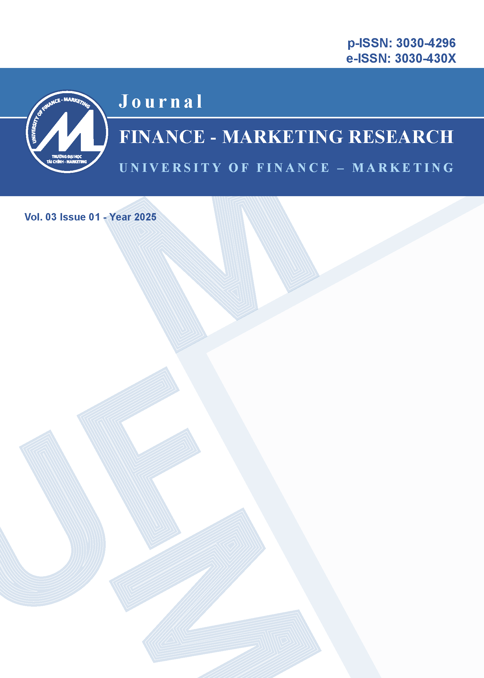2025Journal of Finance - Marketing Research (abbreviated JFM) is a scientific and educational forum of scientists, managers, policymakers inside and outside the University of Finance - Marketing. Periodically for in-depth information, specialization, introduction, publication, posting of scientific research results, consulting in the fields of Economics, Economic Management, Business Administration, Marketing, Commerce, Tourism, Finance, Banking, Accounting, Auditing, etc.